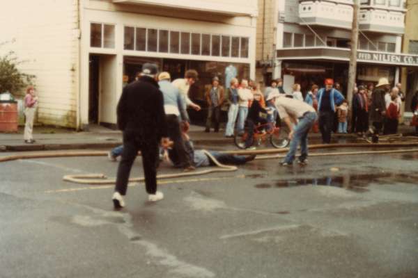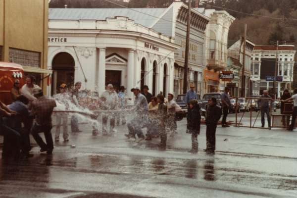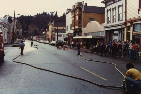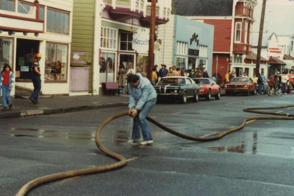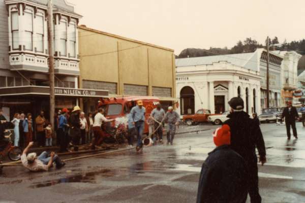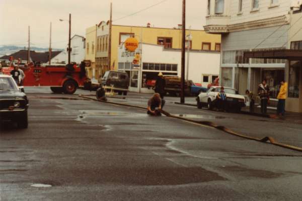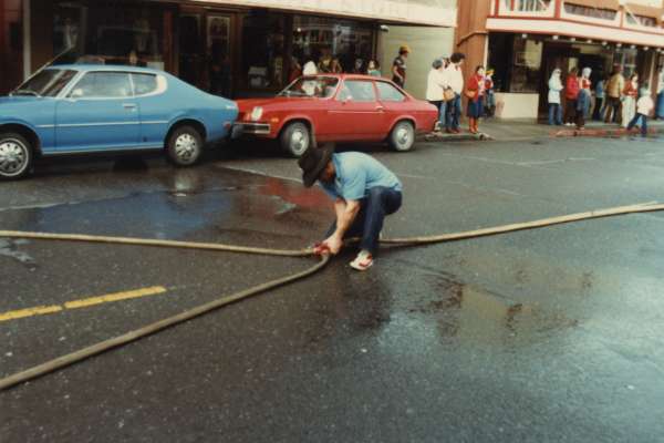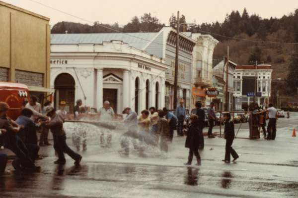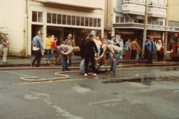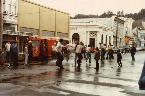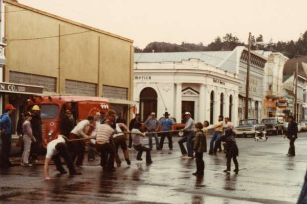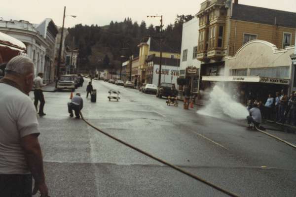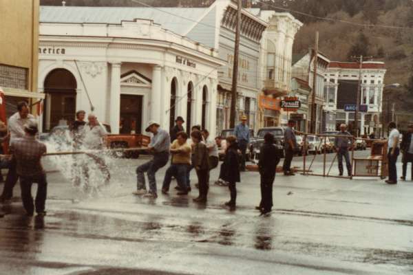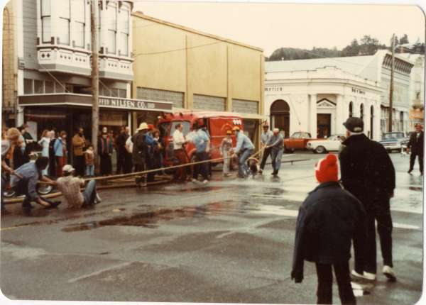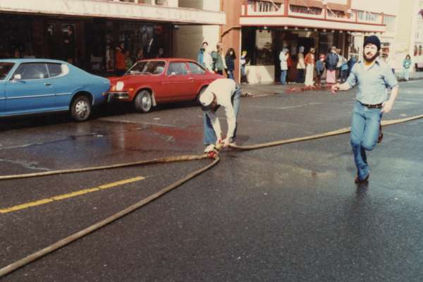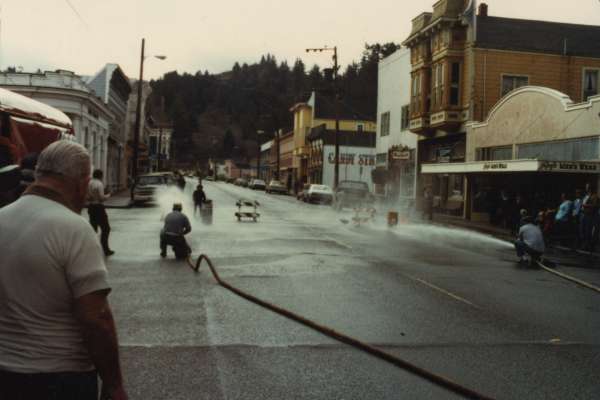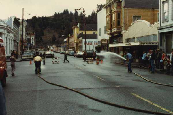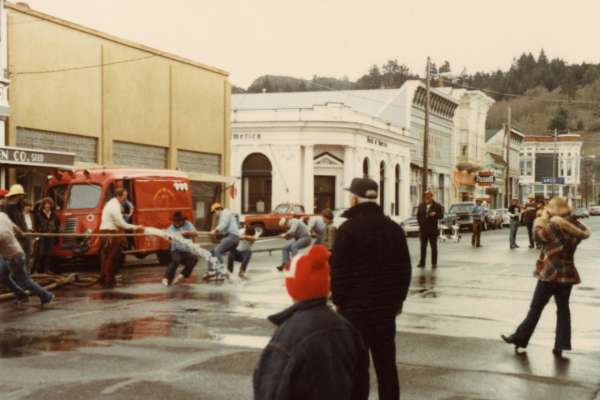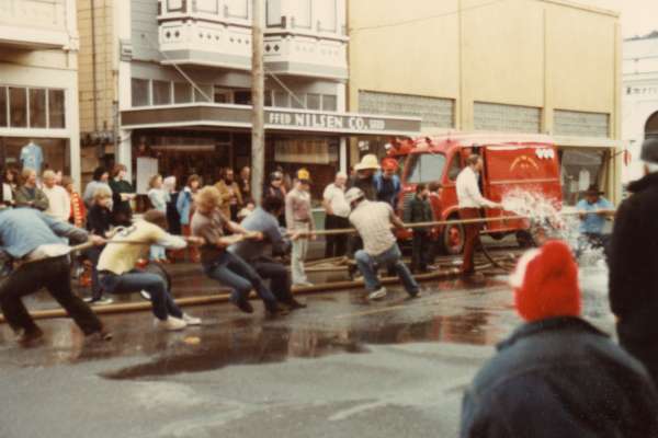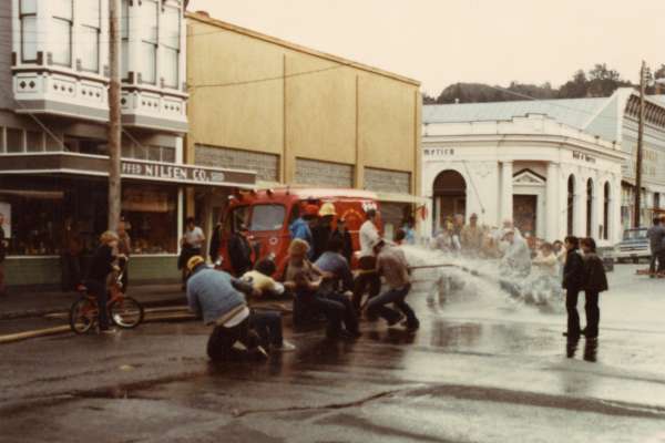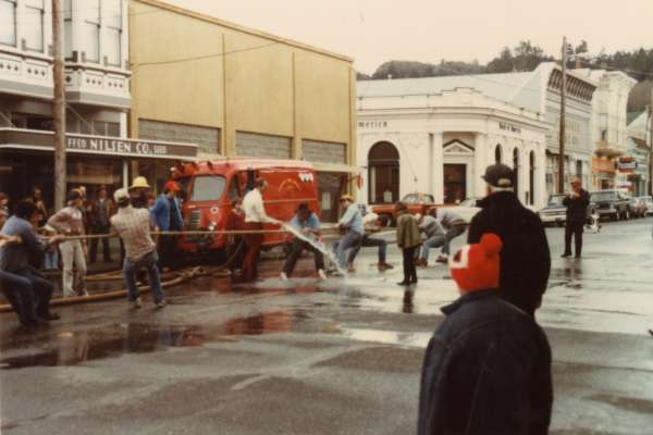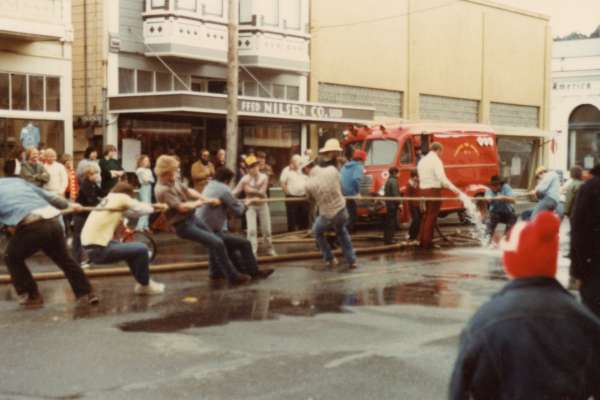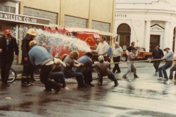 The annual games on Main Street. Hose Lay, Vertical Buckets, and Tug of War. Company 1 won the Tug of War.