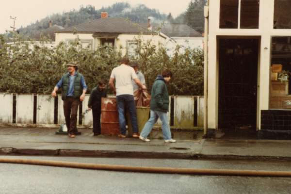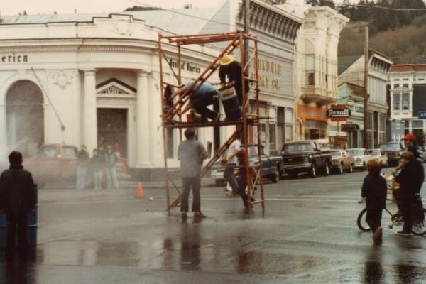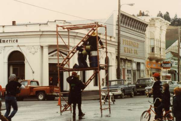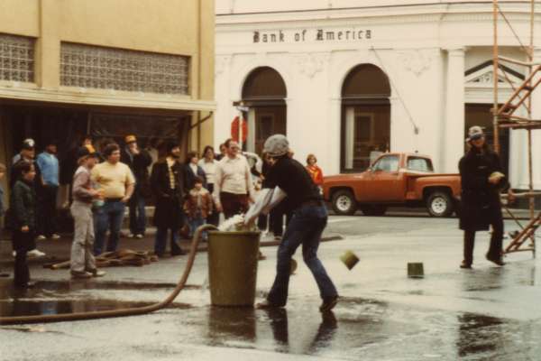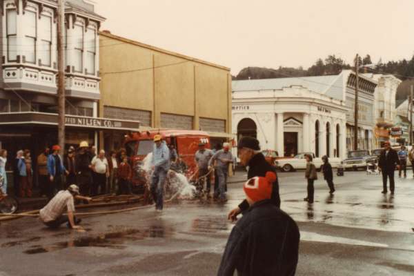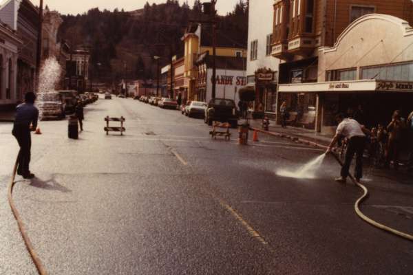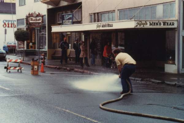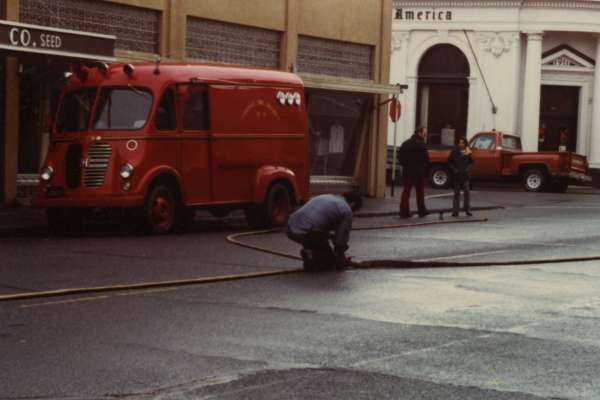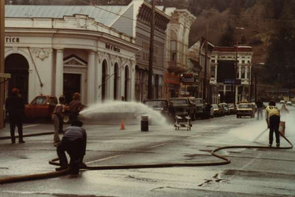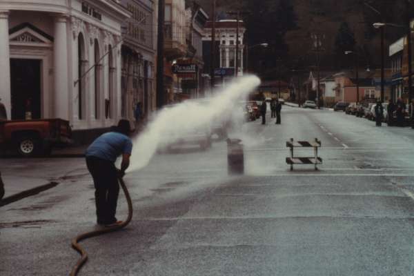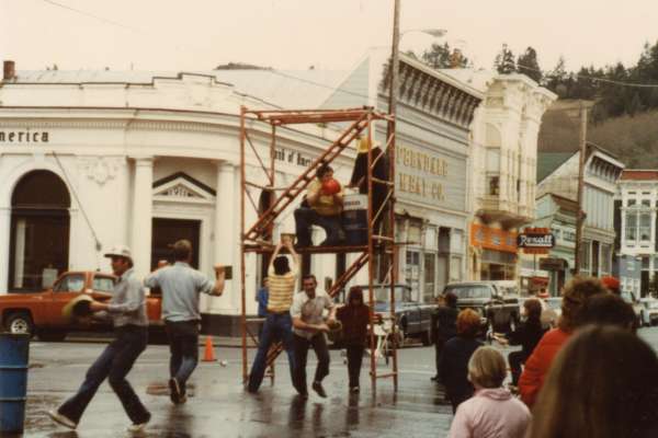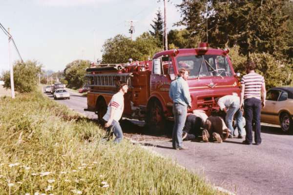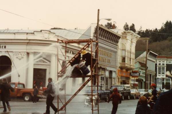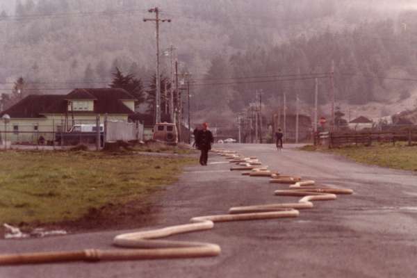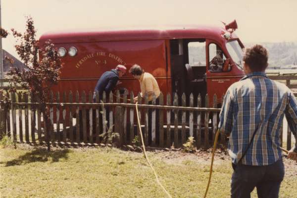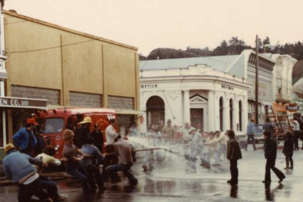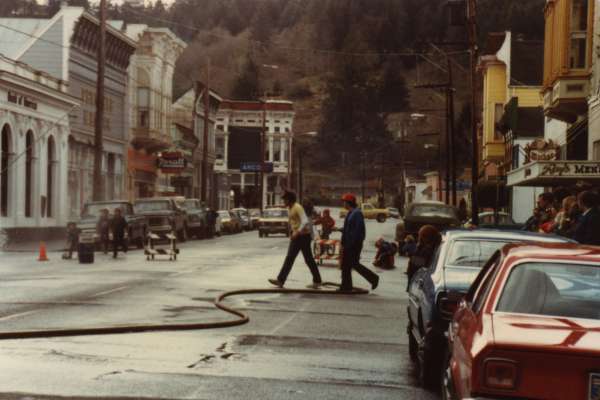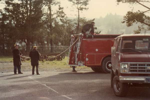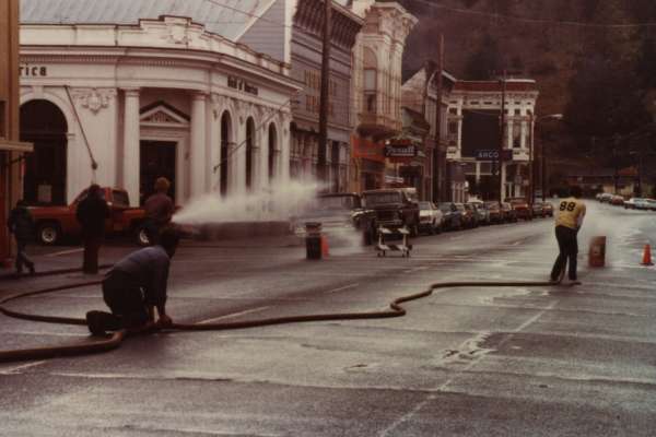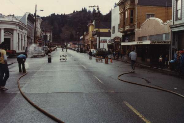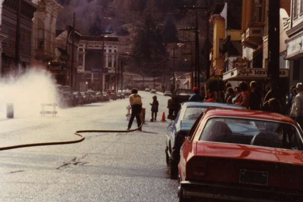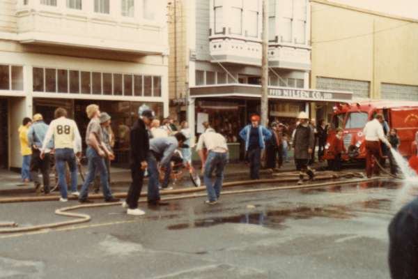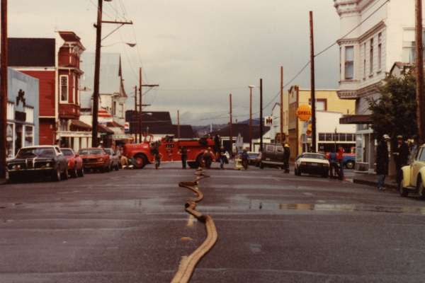 The annual games on Main Street. Hose Lay, Vertical Buckets, and Tug of War. Company 1 won the Tug of War.